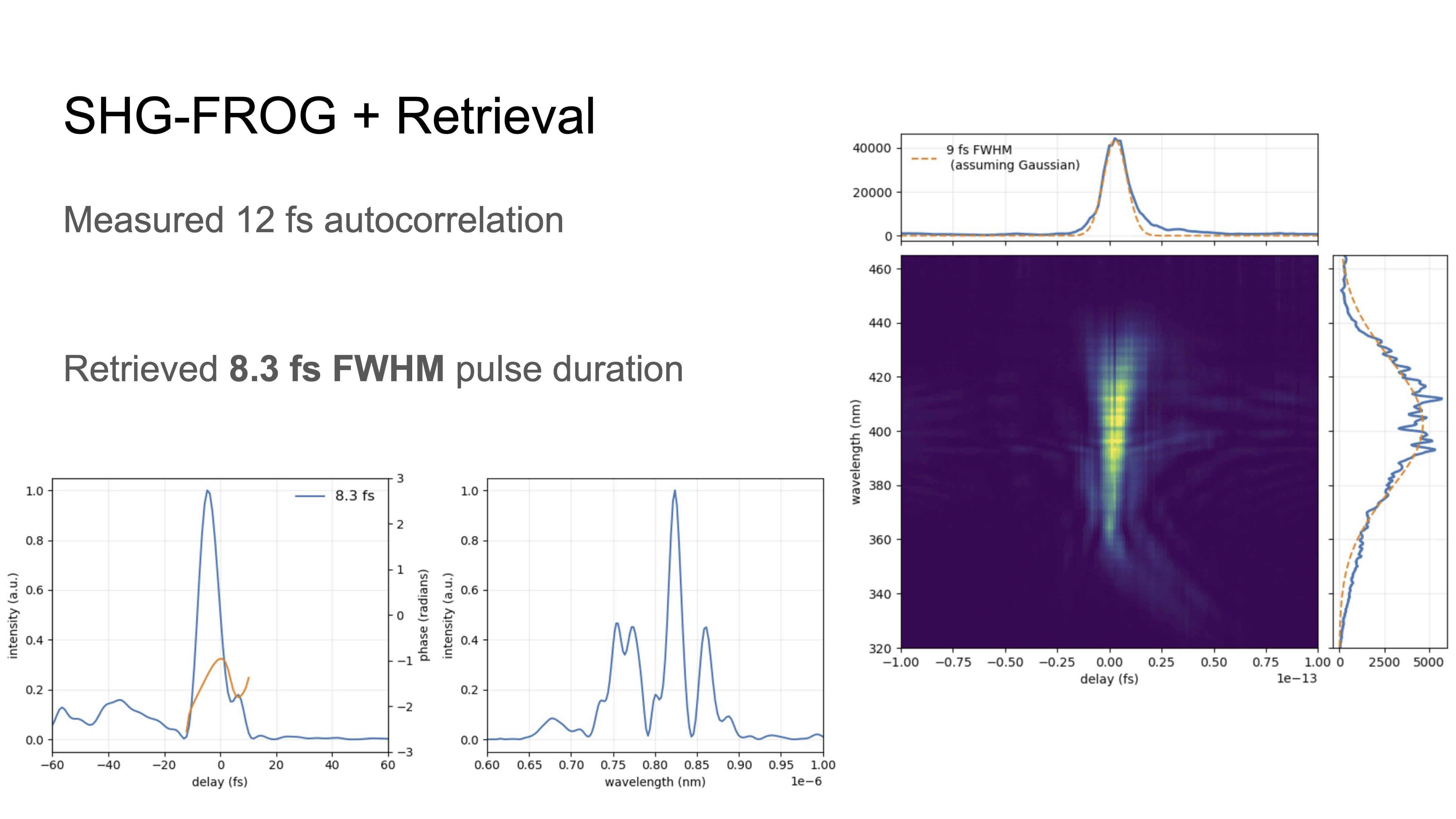 The pulse duration is characterized using second harmonic generation frequency-resolved optical gating (SHG-FROG) and FROG retrieval is performed using this code.