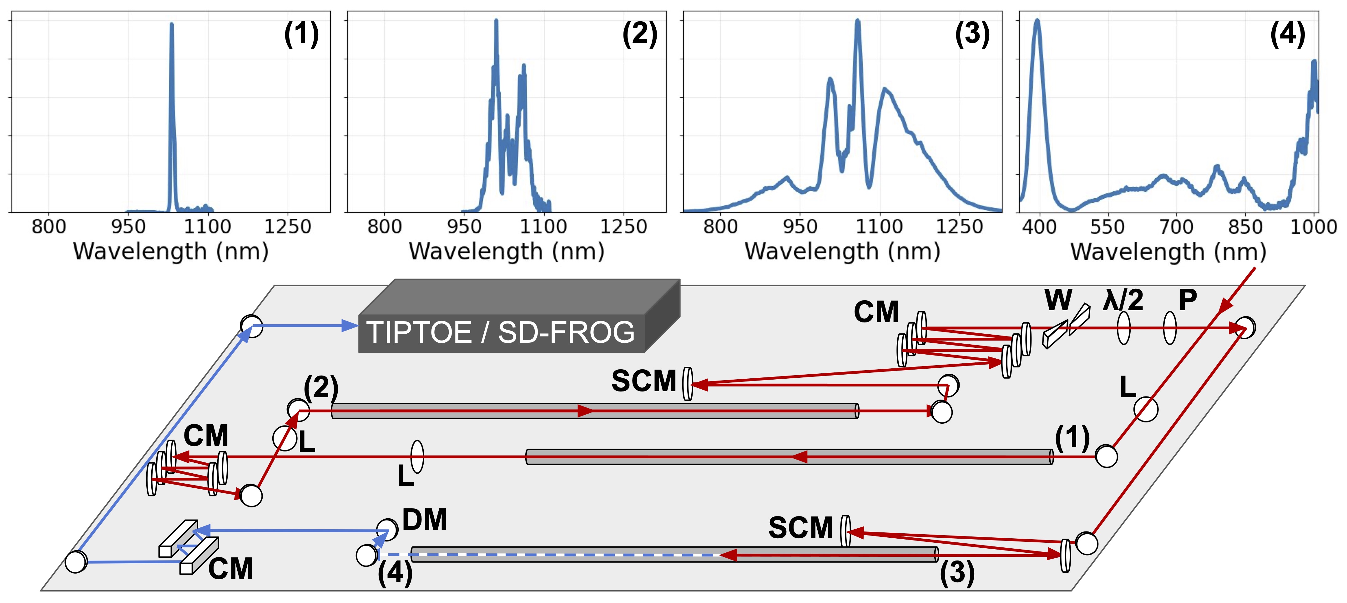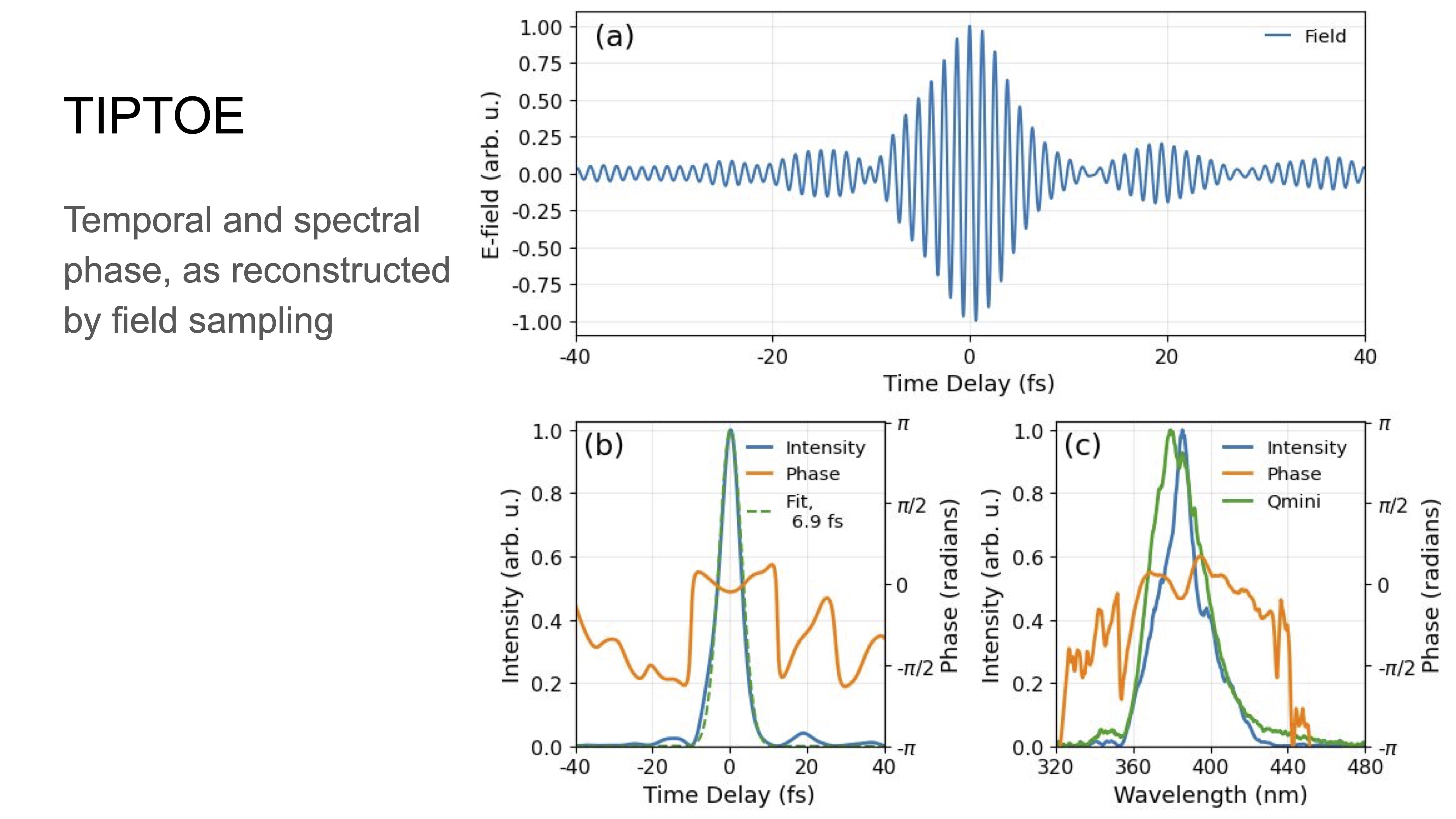 The RDW pulse is also characterized using direct optical field sampling (TIPTOE), where the result is shown below.