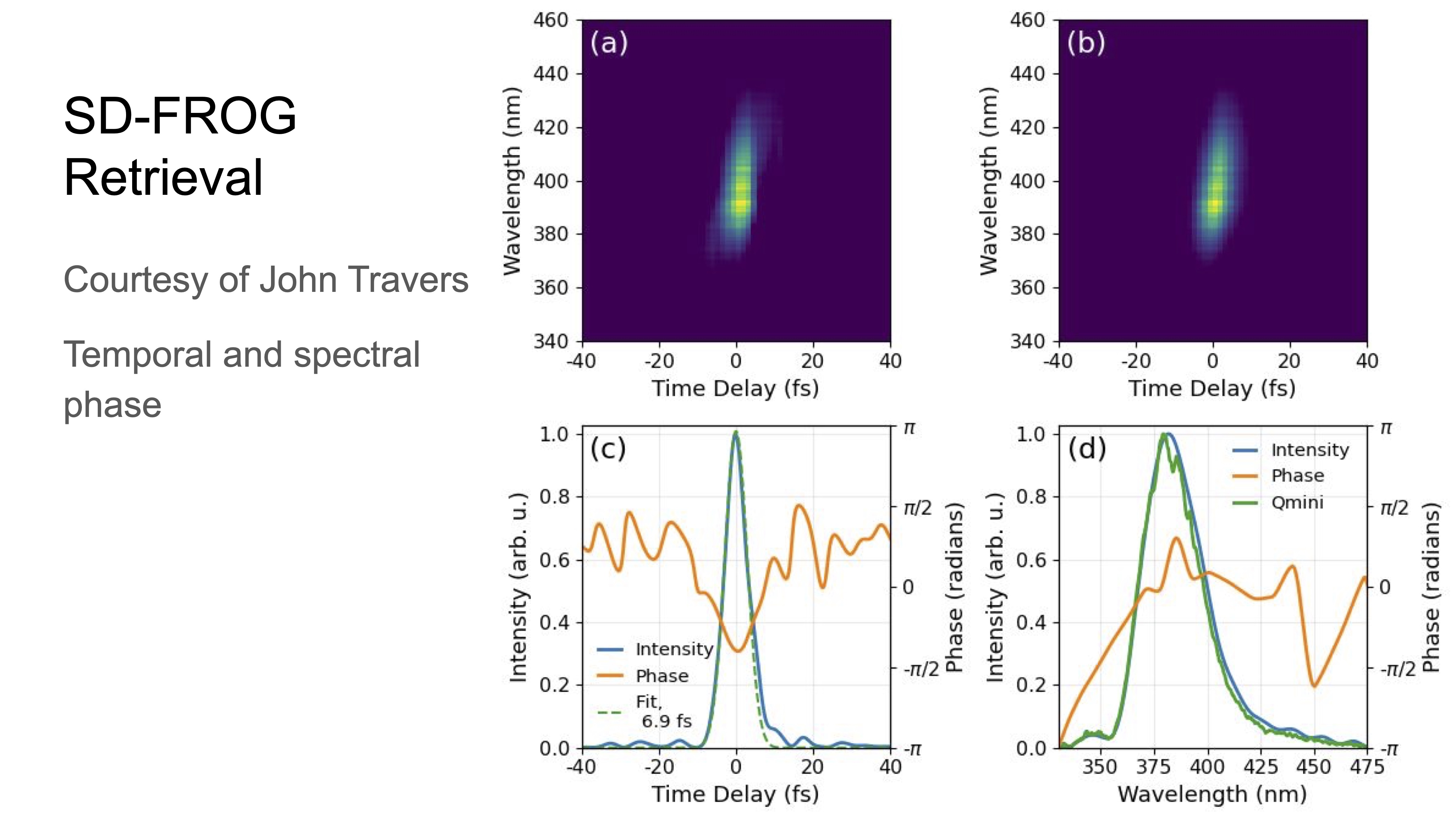 The RDW pulse is characterized using SD-FROG, where the retrieval is shown below.