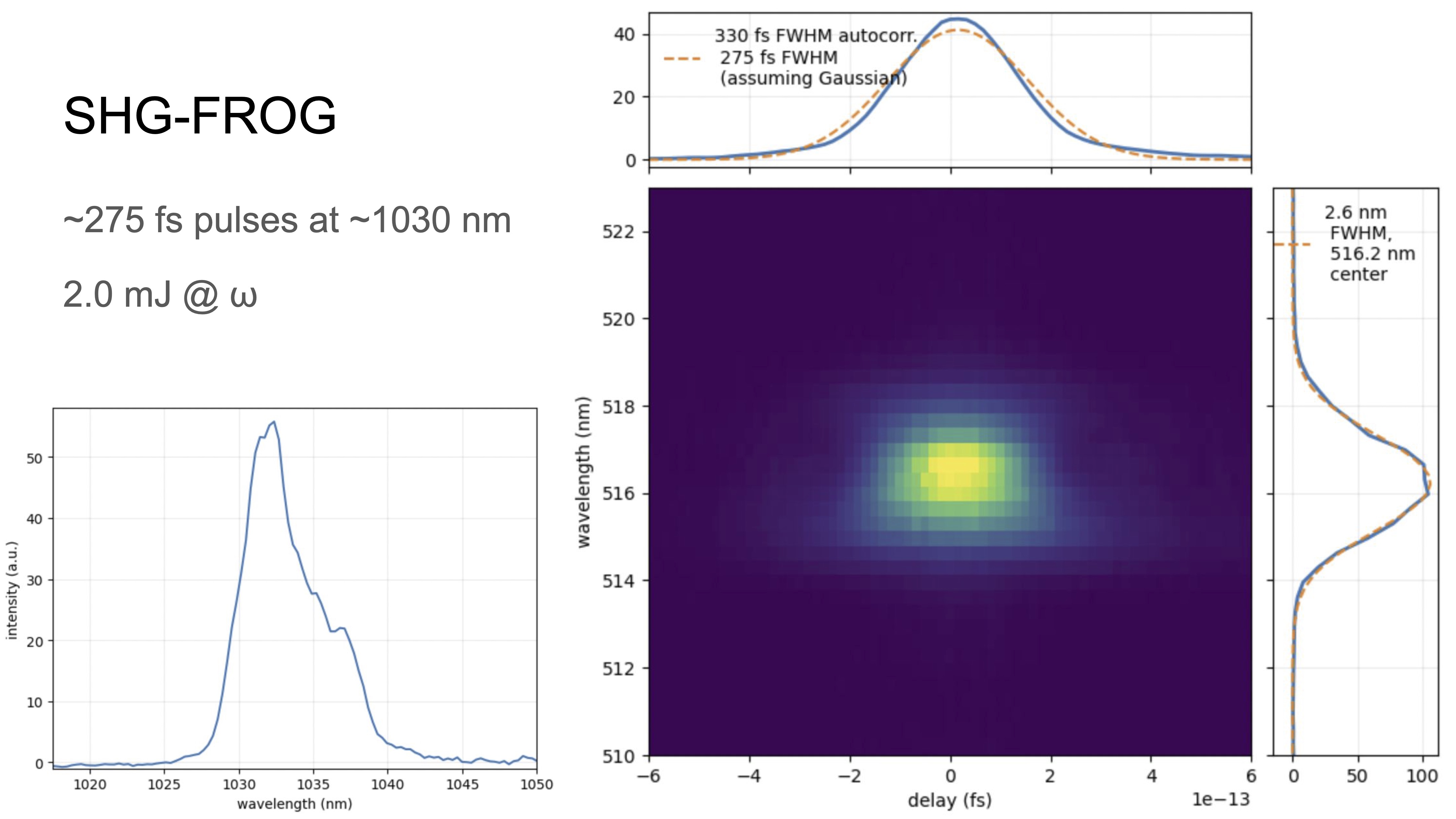 The native Carbide output (1030 nm) is characterized using SHG-FROG, which is shown below.